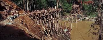 Prisoners of war building a bridge, thinking of loved ones, inspiration to survive...Bridge over the River Kwai, The Narrow Road to the Deep North, the Bridges of Madison County...